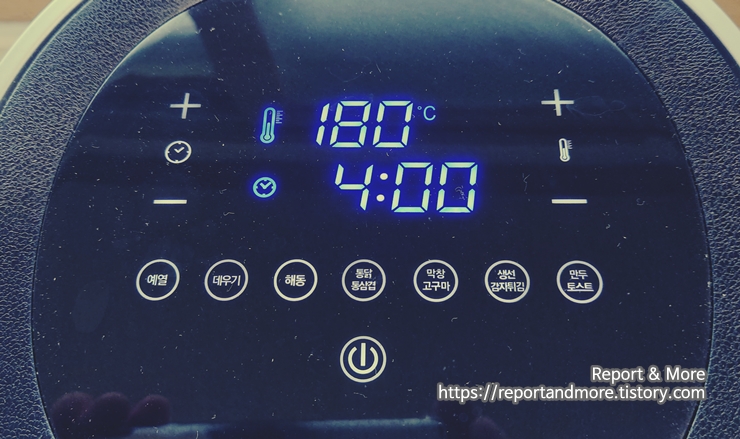 먼저 180도로 2분 예열 후, 본격적으로 4분 익혀주고, 뒤집어서 3분 익혀주었습니다.