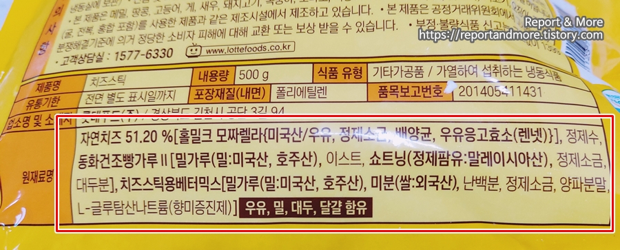 미국산 모짜렐라 자연치즈 51.20%가 들어가 있네요.