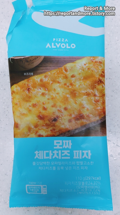 모짜 체다치즈 피자는 110g에 297kcal입니다.