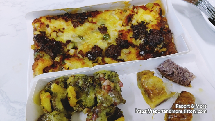 다른 친구들은 전자레인지의 특성상 도우가 약간 물먹은 것처럼, 좋게 말하면 촉촉했는데요,