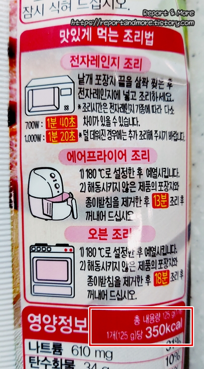 전자레인지로는 1분 40초, 에어프라이어는 180도로 13분 정도면 되는군요.