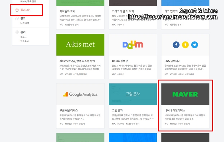2. [플러스인]에서, [네이버 애널리틱스]를 찾아 클릭.