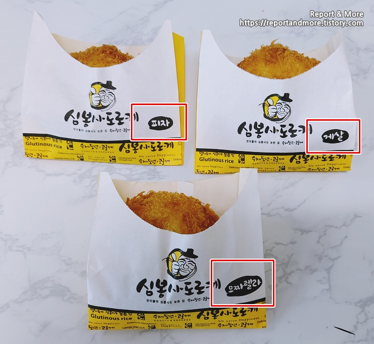 오늘은 피자, 게살, 모짤렐라, 이렇게 3종류를 구매했습니다.