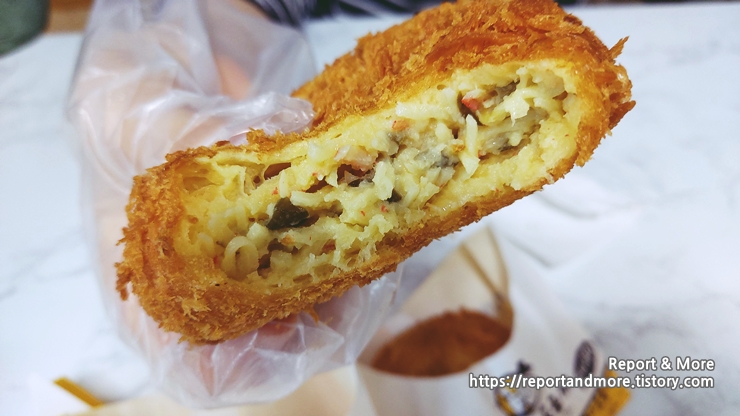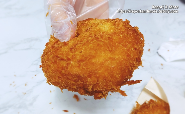 (1) 일단은 내용물이 참으로 충실했습니다. 고로케의 내용물이 적은 경우도 많잖아요? 위의 사진처럼 내용물이 많이 들어 있어서 좋았습니다.