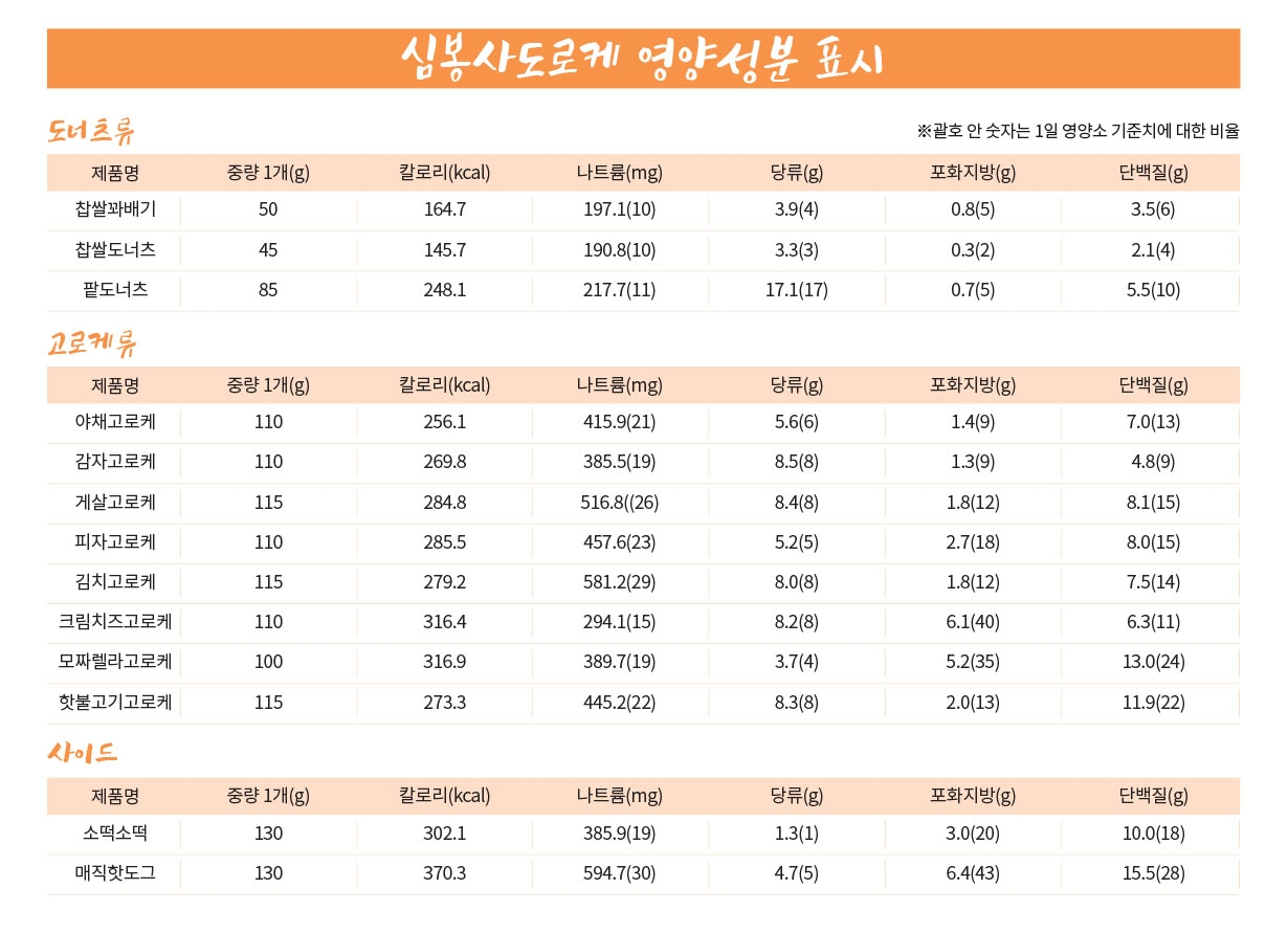 참고로, '심봉사 도로케 영양성분표'를 올려드립니다. (클릭하시면 큰 사진으로 보실 수 있습니다.)