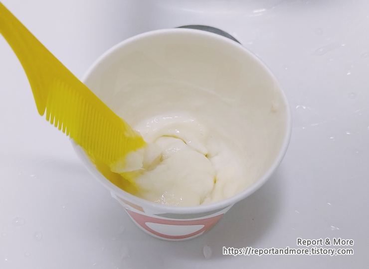 (1) 염모제는 약간 아이보리색 아이스크림 같습니다.