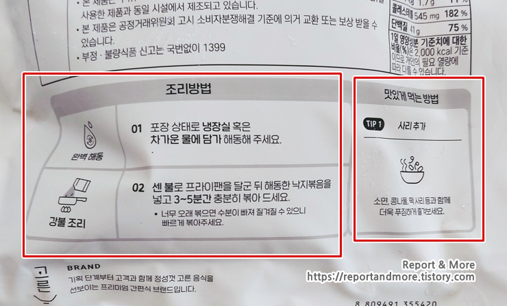 아니면, 바로 봉지 그대로 차가운 물에 담가서 해동하시면 된다고 되어 있네요.