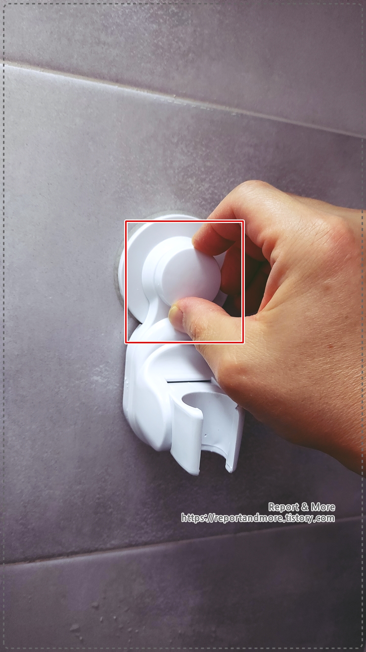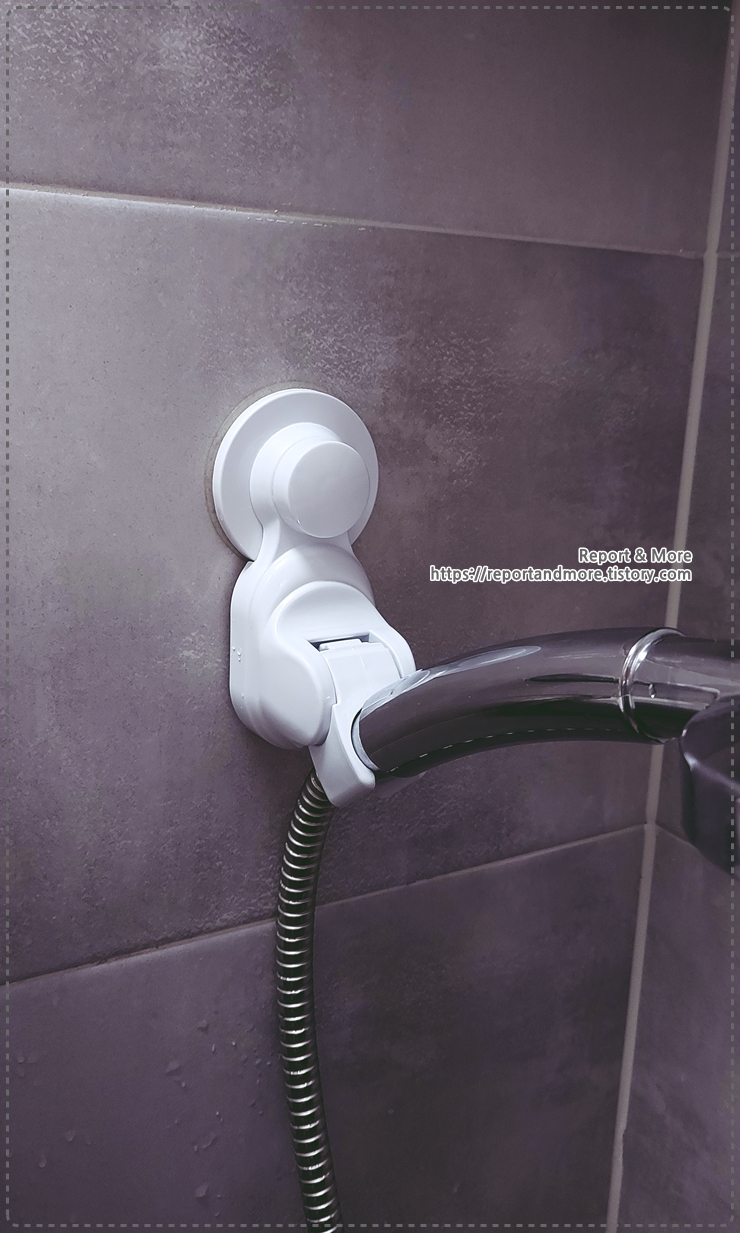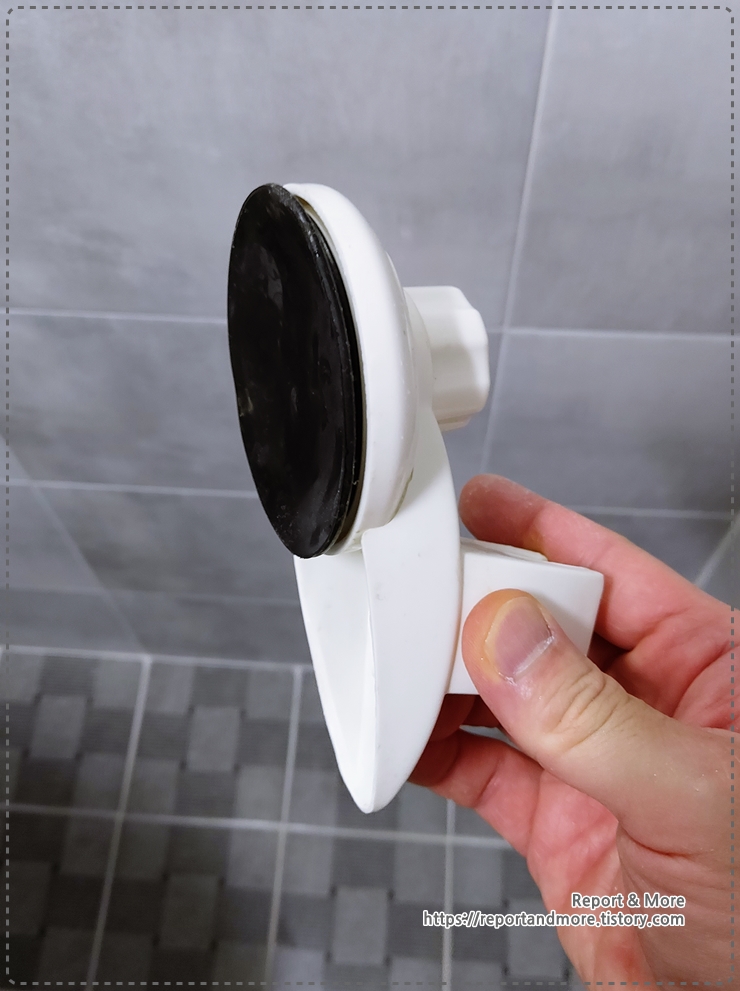 그러다 어느 날 갑자기 '탕!'소리와 함께 흡착판과 샤워기가 바닦에 나 뒹굴고 있는 장면을 목격하게 됩니다.