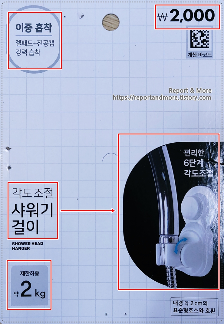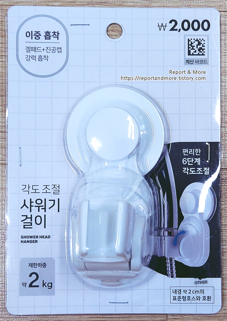 (2) 최대 2kg까지 무게를 견딥니다. 뭐, 샤워기 무게가 그정도는 아니니까요.