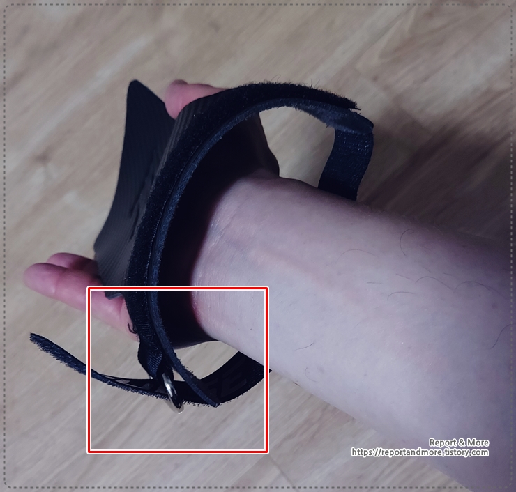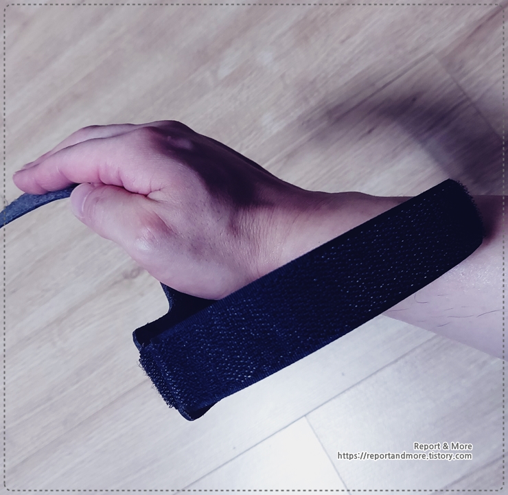 찍찍이를 뜯어서 손목을 한바퀴 돌려 줍니다.