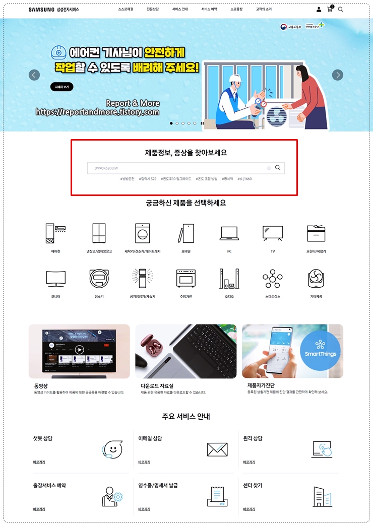 그래도, 혹시나 해서 삼성서비스센터 사이트에서 검색해 보았습니다.