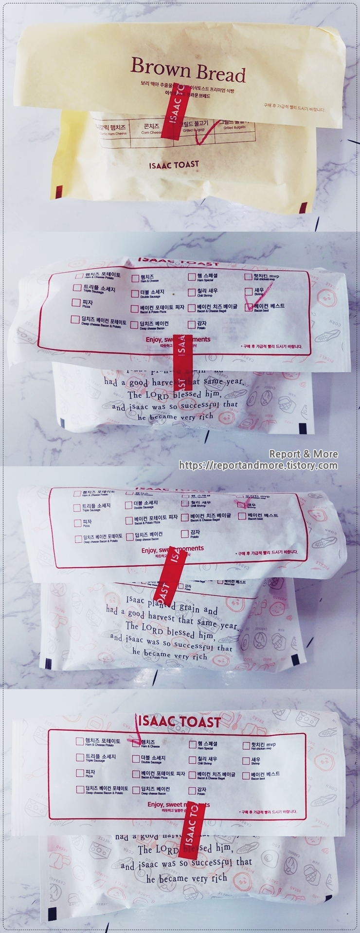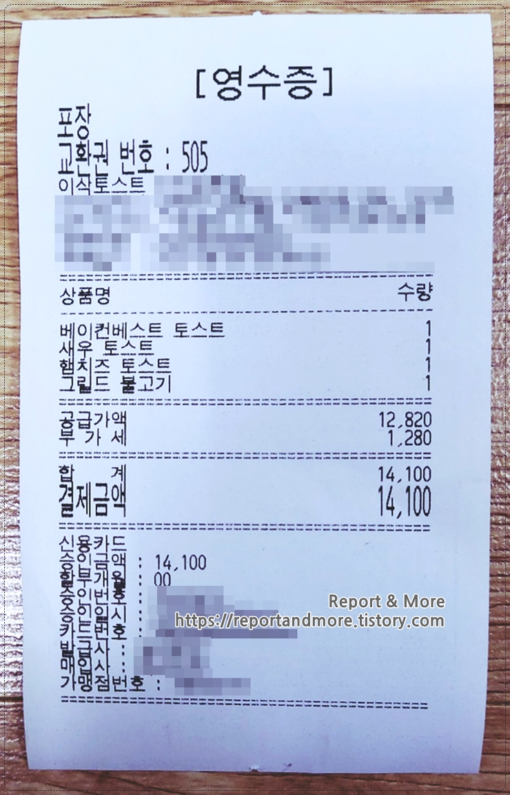 (4) '햄치즈 토스트'는 이삭 토스트의 시그니처라서 구매했습니다.