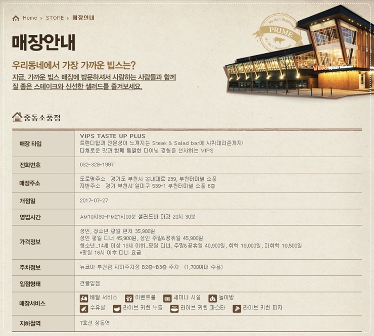 경기도 부천시 상동에 있는 빕스(VIPS)를 일요일에 다녀 왔습니다.
