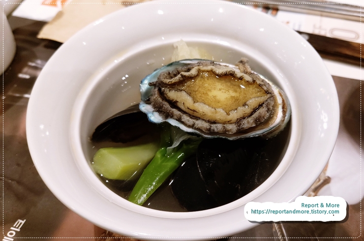 집사람은 전복이, 저는 그 안에 있는 브로컬리가 맛있었습니다.