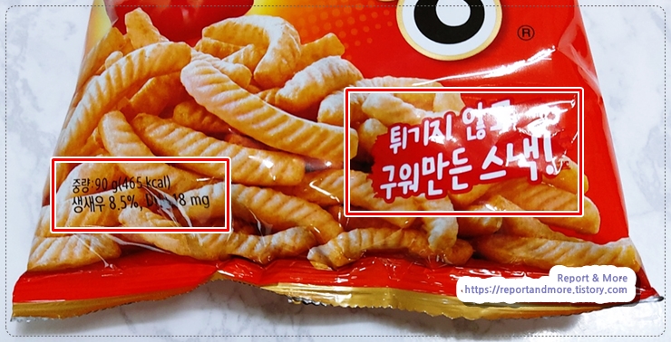 분명히 '튀기지 않고 구워 만든 스낵!'이라고 적혀 있는데,