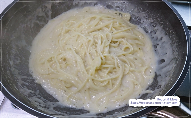 대상 쉐프원 크림파스타소스를 넉넉히 넣었습니다.
