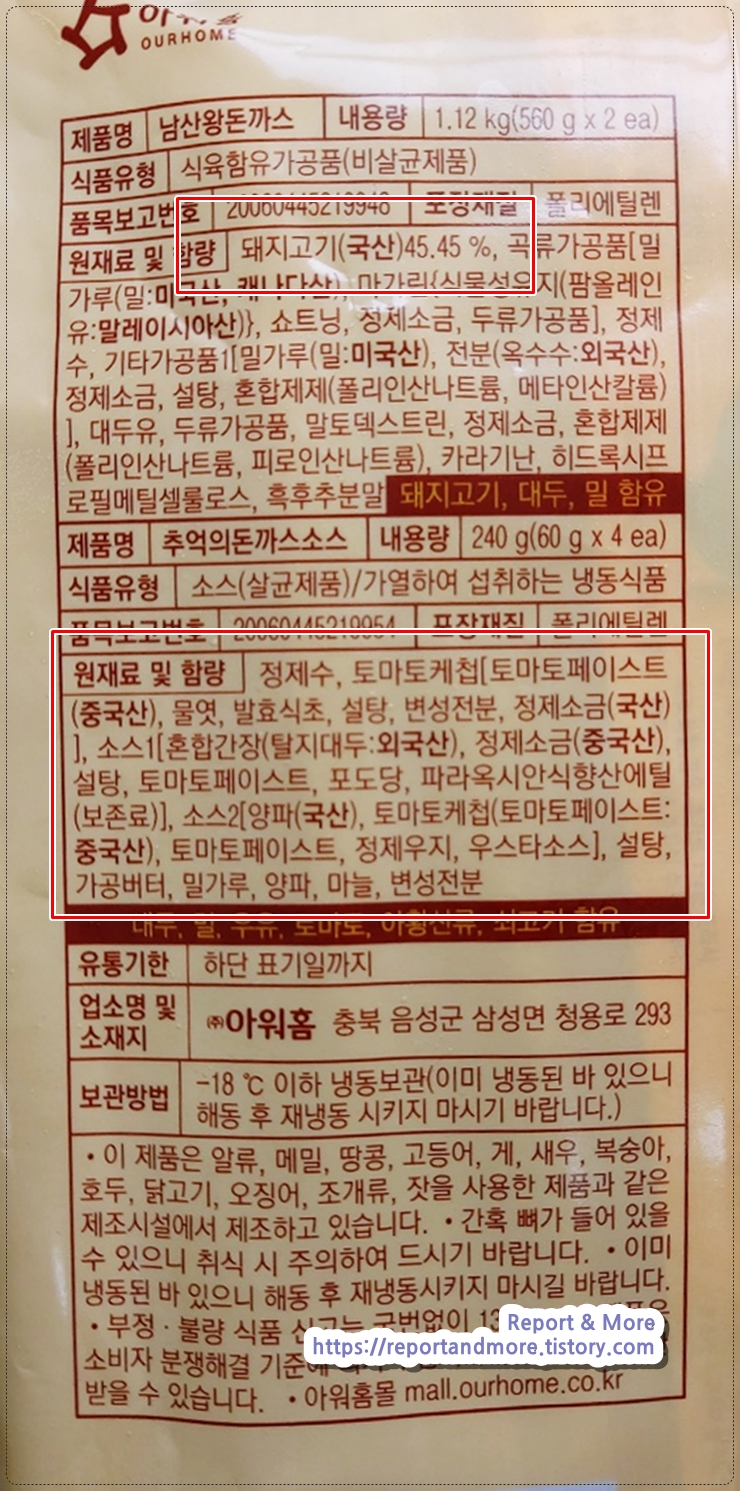 '아워홈의 남산 왕돈까스' 이렇게 생겼습니다.