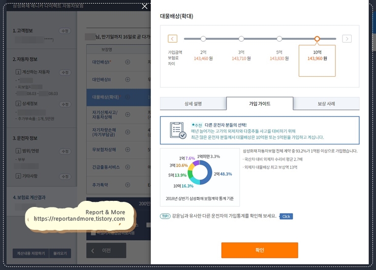 2억보상이나 10억보상이나 보험료가 몇백원(겨우?) 차이입니다.