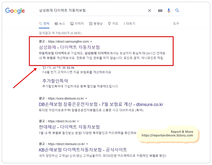 가입 방법은 먼저 '삼성화재 다이렉트 자동차보험'이라고 검색을 합니다.