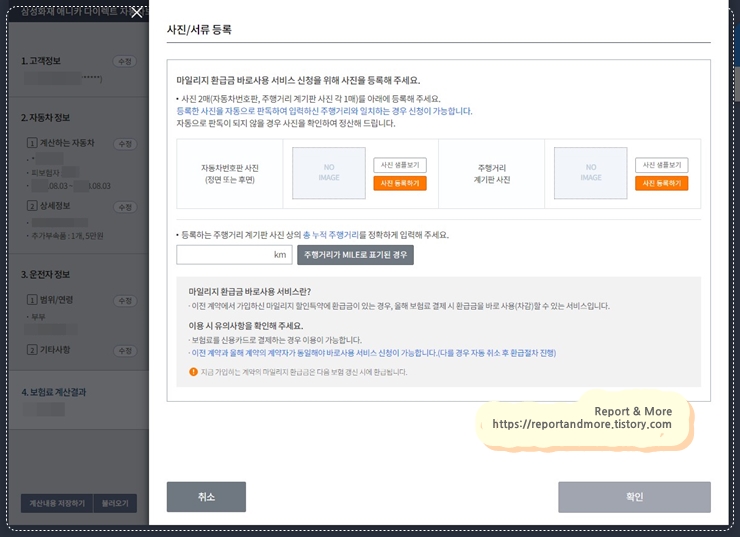 '자동차 번호판 사진'과 '계기판의 킬로수 사진'을 업로드 하면 됩니다.