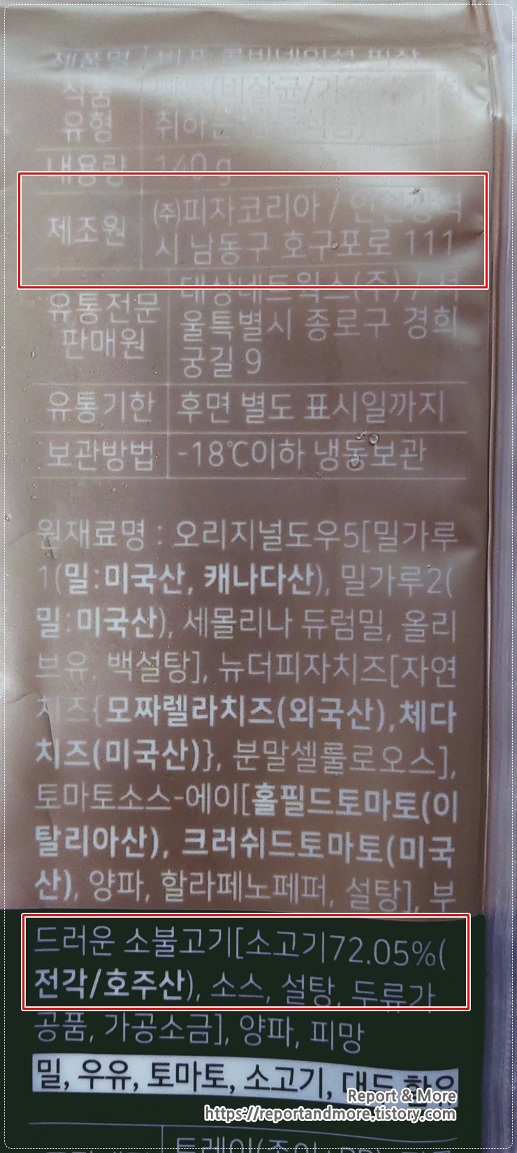 혹시나 해서 이번에는 '비프 콤비네이션 피자'를 조리해 보았습니다.