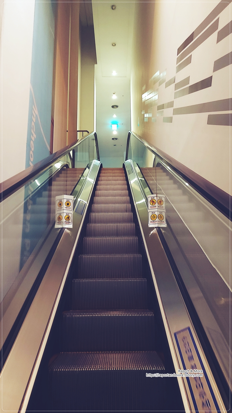 2층 전시실로 가는 에스컬레이터입니다.