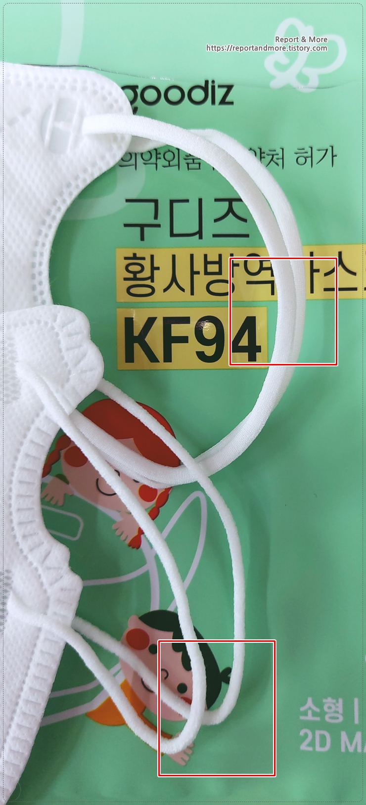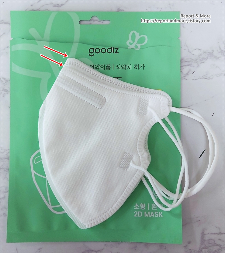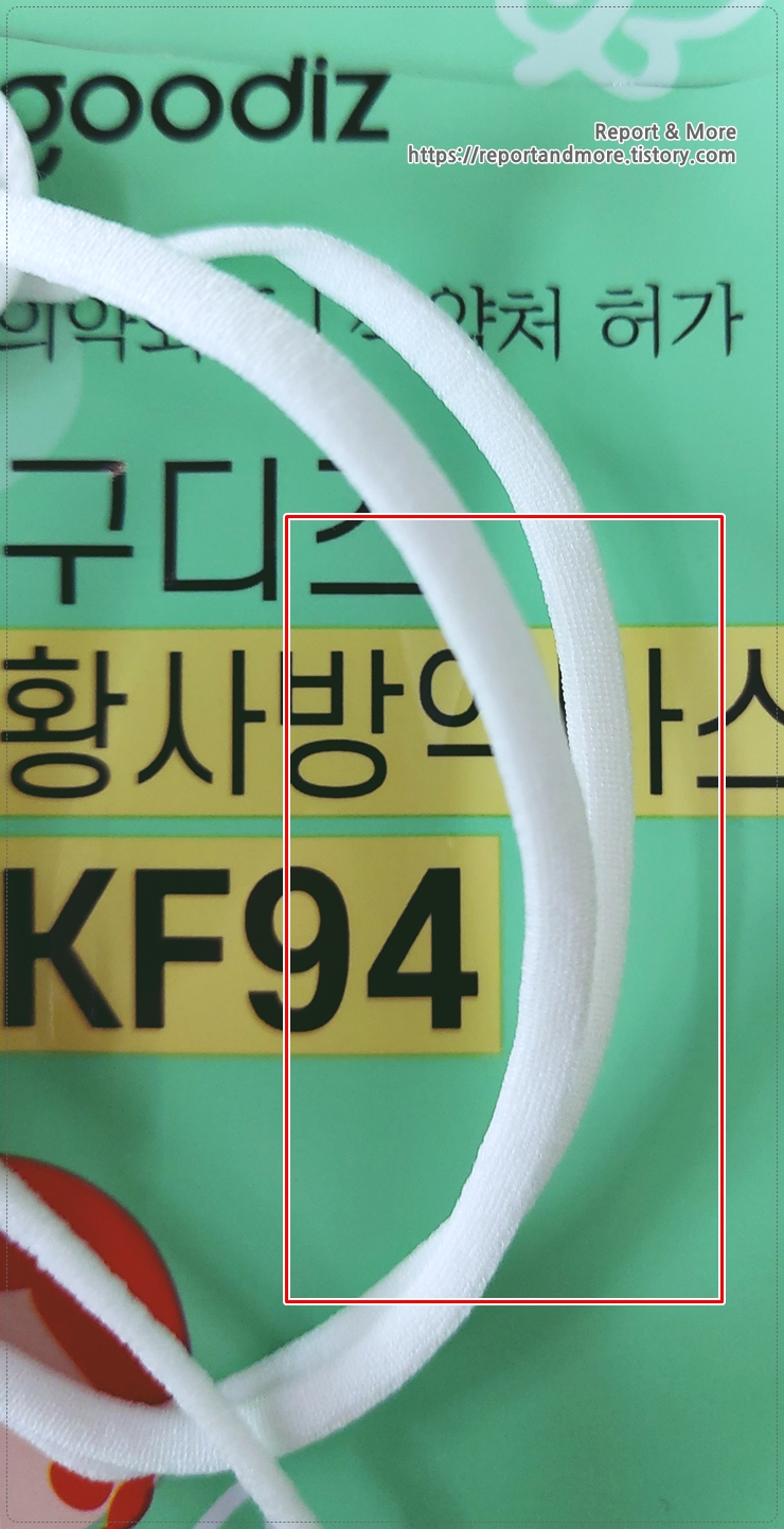 구디즈는 마스크 끈이 좀 더 두껍고, 부드럽습니다.