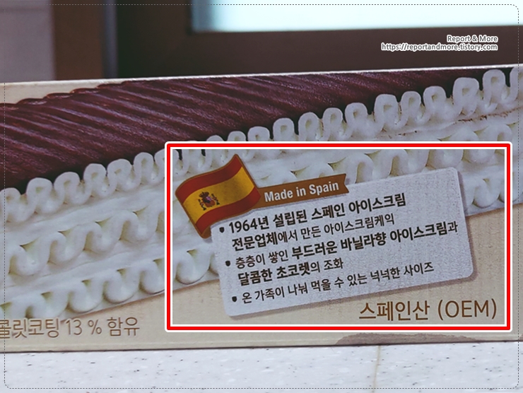 이 제품은 1964년에 설립된 스페인 회사로부터 수입한 아이스크림입니다.