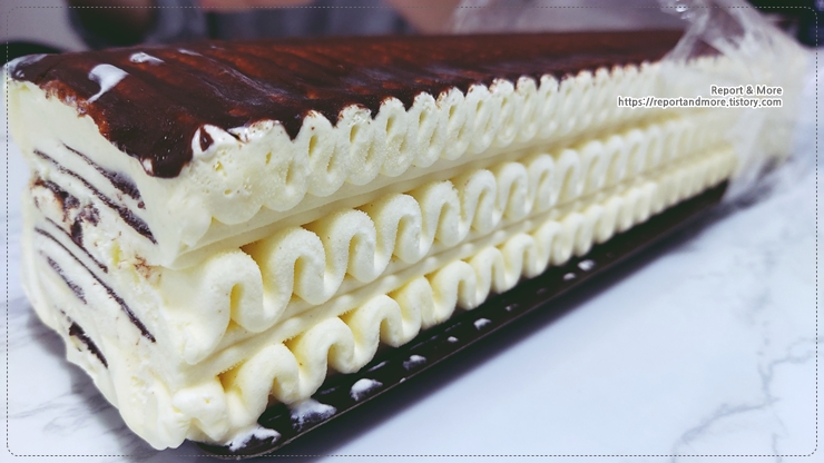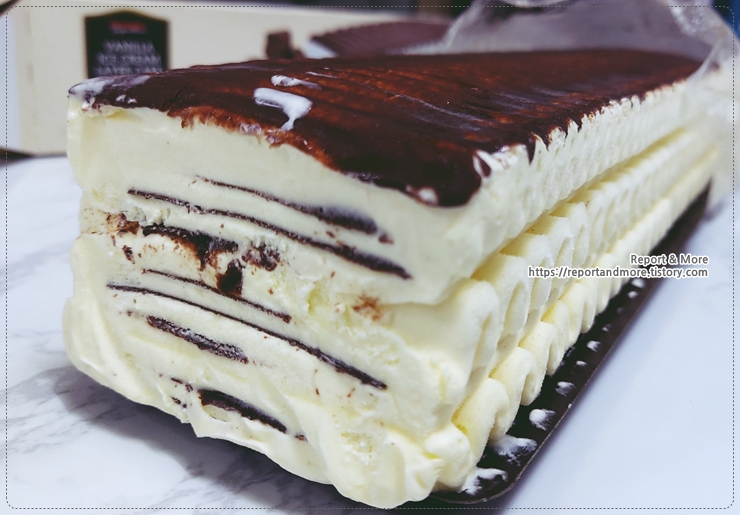 옆에서 보시면, 이렇게 아이스크림과 초코릿이 겹겹이 쌓여 있는 것이 보입니다.