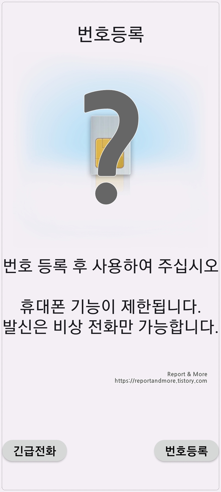 '번호 등록 후 사용하여 주십시오. 휴대폰 기능이 제한됩니다. 발신은 비상전화만 가능합니다.'