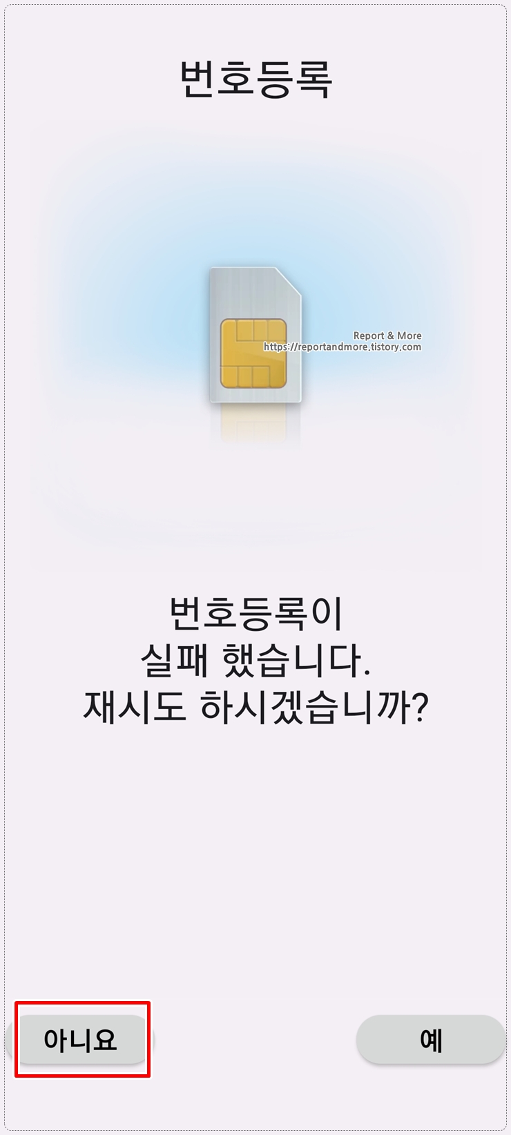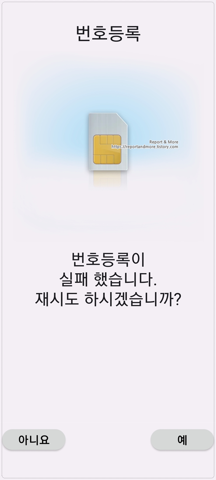 '번호등록이 실패 했습니다. 재시도 하겠습니까?'