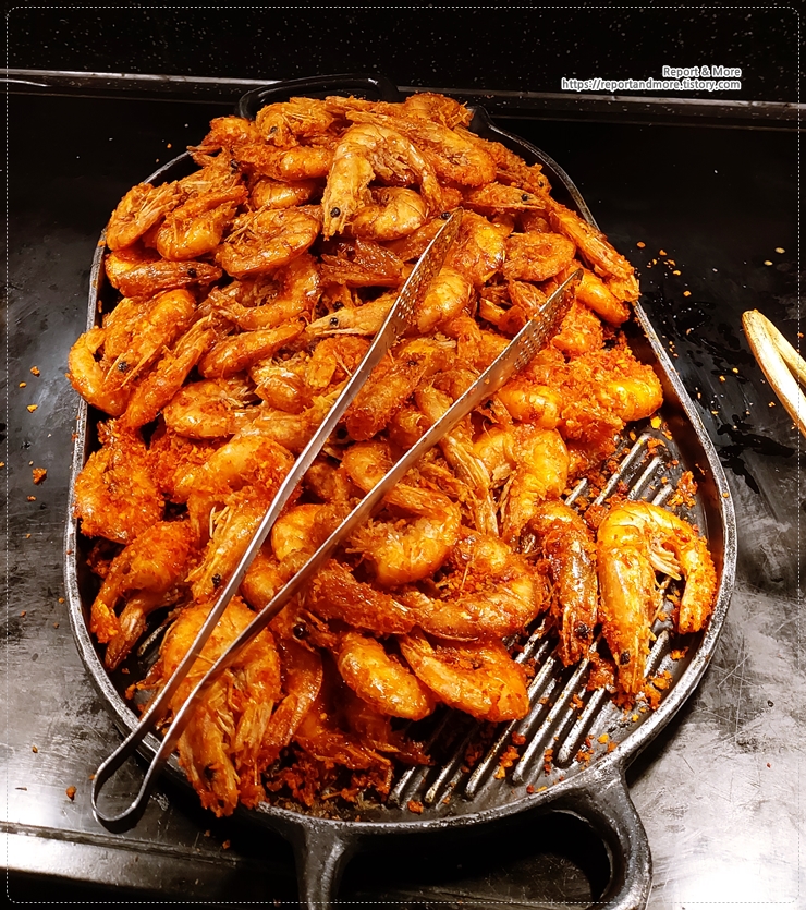 적당히 매운 맛에, 적당히 짠 맛에, 적당히 마늘 맛이 나는 새우입니다.