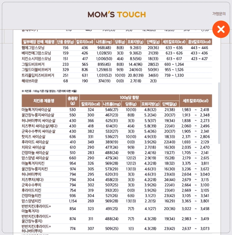 맘스터치 홈페이지에서 보면,