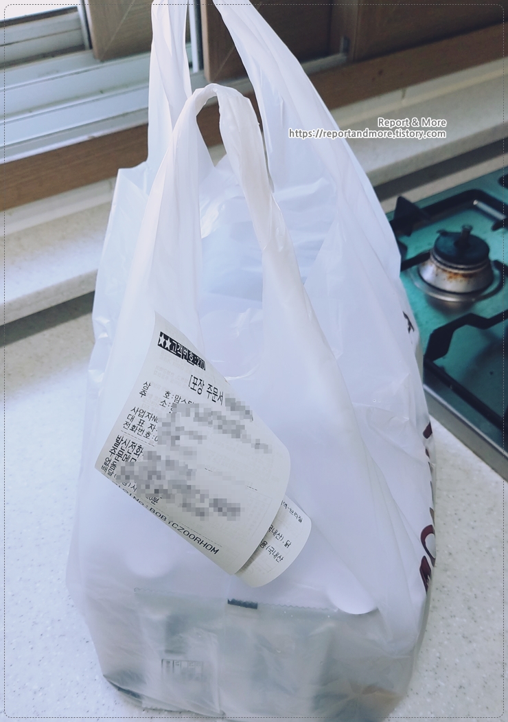 '마늘톡겨자싸이순살치킨' 위에 '반'만 부었고요,