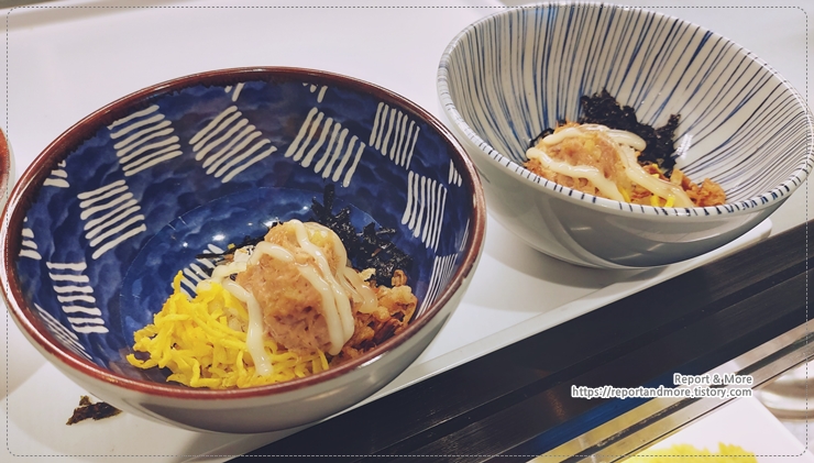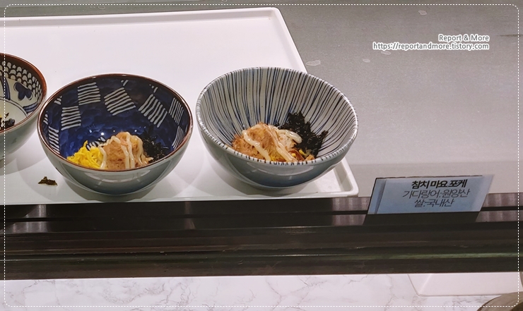 '초밥(스시)'과 '마키' 그리고 '군함' 종류가 몇가지 있습니다.