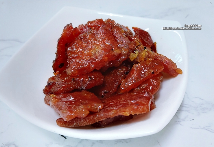 (4) 보통 육포는 소고기를 생각하지만, 돼지고기도 맛있다는 생각을 하게 해준 제품입니다.