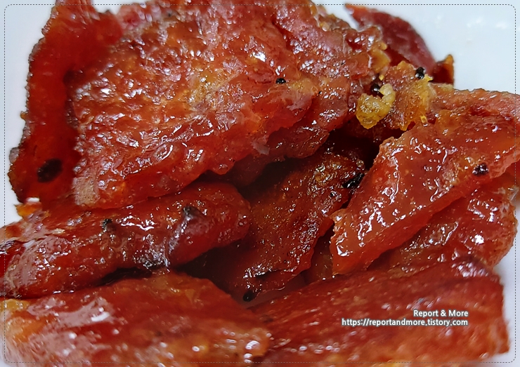뭐랄까, 부드러운 육포(?)에 훈제된 향과 달콤함, 그리고 멸치액젓의 짭쪼름한 맛까지...