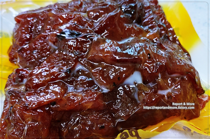 (2) 육포가 딱딱하지 않고, 부드럽습니다. 할아버지 할머니도 좋아하실 부드러움.