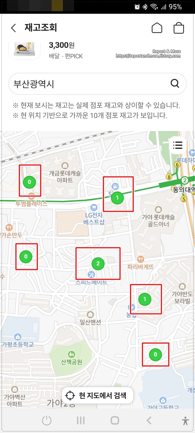 지금 재고가 있는 곳과 없는 곳이 상세히 나오네요.