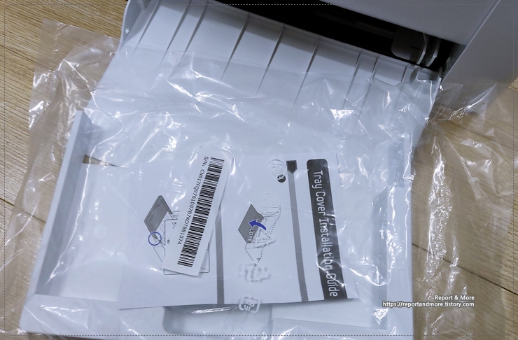 먼저 프린터의 비닐 커버를 제거해 주세요.