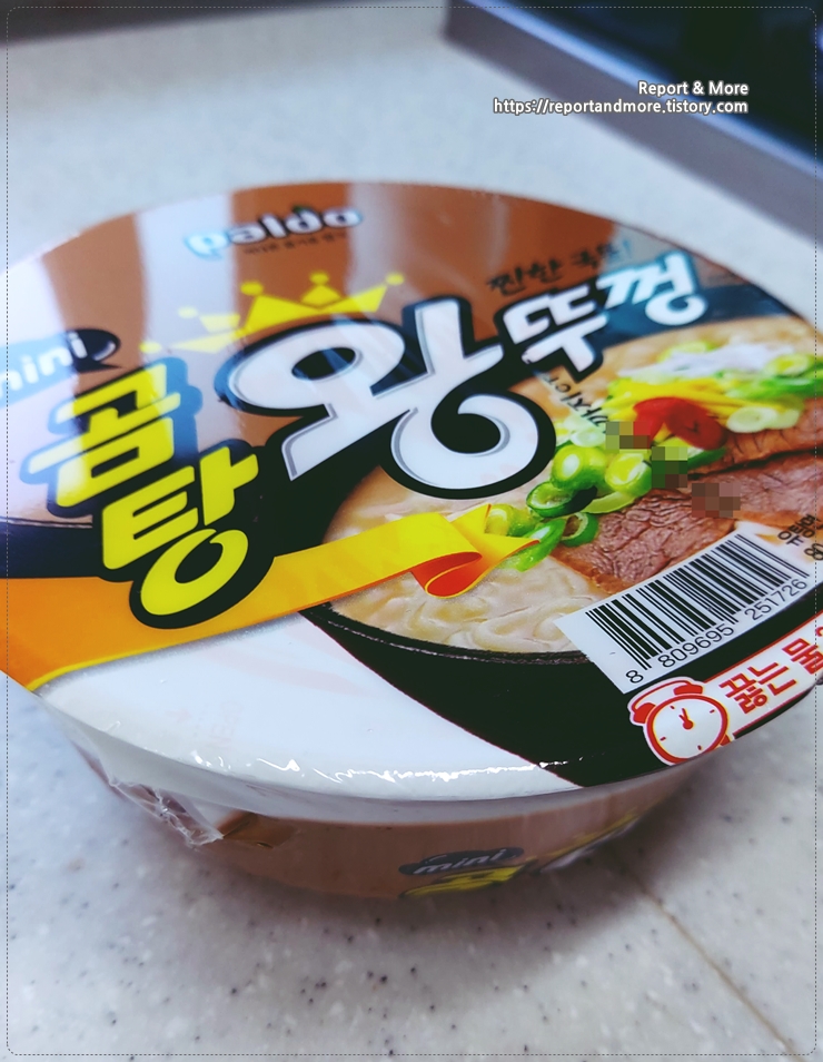 마트에 갔다가 '팔도 미니 곰탕 왕뚜껑'이라는 꼬맹꼬맹한 제품이 있길래, 얼른 집으로 모셔왔습니다.