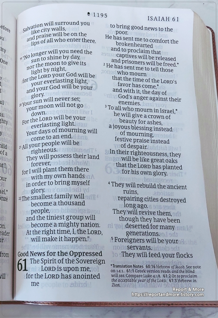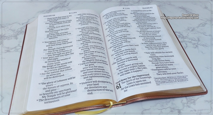 이 성경책을 구매하기 전, 다른 출판사 것과 열심히 비교해 보았는데요, 제가 딱! 원하는 그런 성경이었습니다.