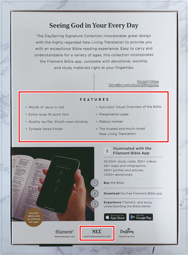 Features에 보시면, 이 성경책의 특징이 쭈~욱 나오는데요,