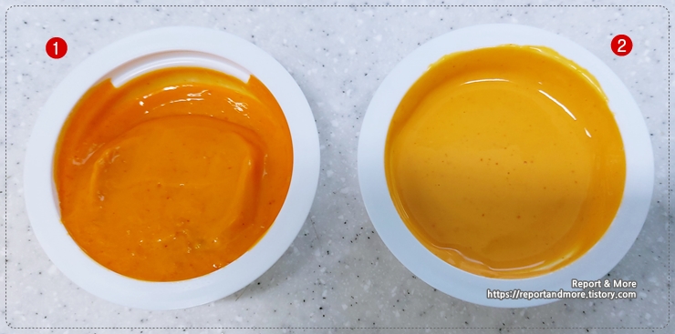 왼쪽이 고블링소스, 오른쪽이 마블링소스입니다.