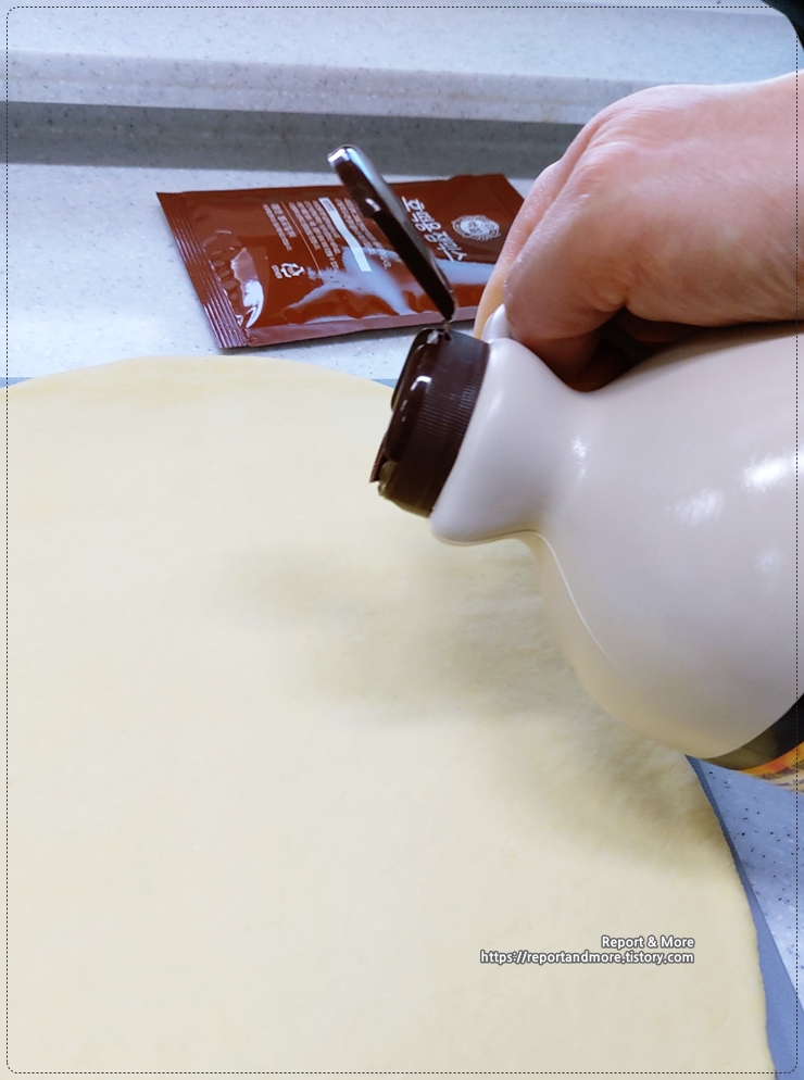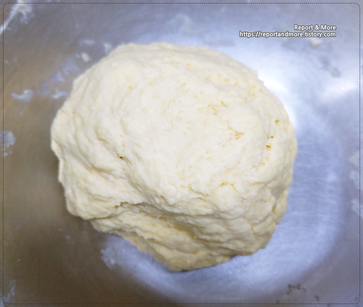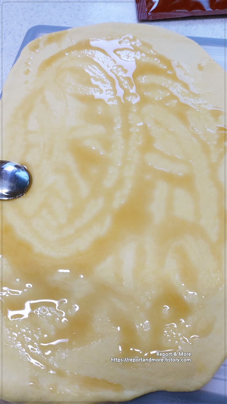 따뜻한 물 -> 이스트 -> 주걱으로 저어주기 -> 프리믹스 -> 식용유 -> 주걱으로 다시 저어준 후 -> 5~10분 정도 골고루 반죽