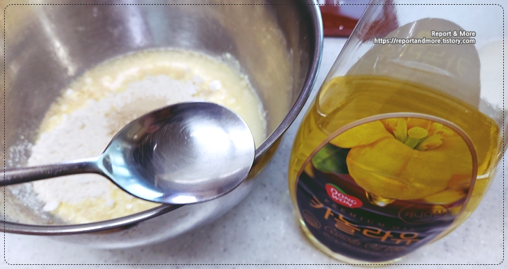 식용유도 밥숟가락 3스푼 넣고...
