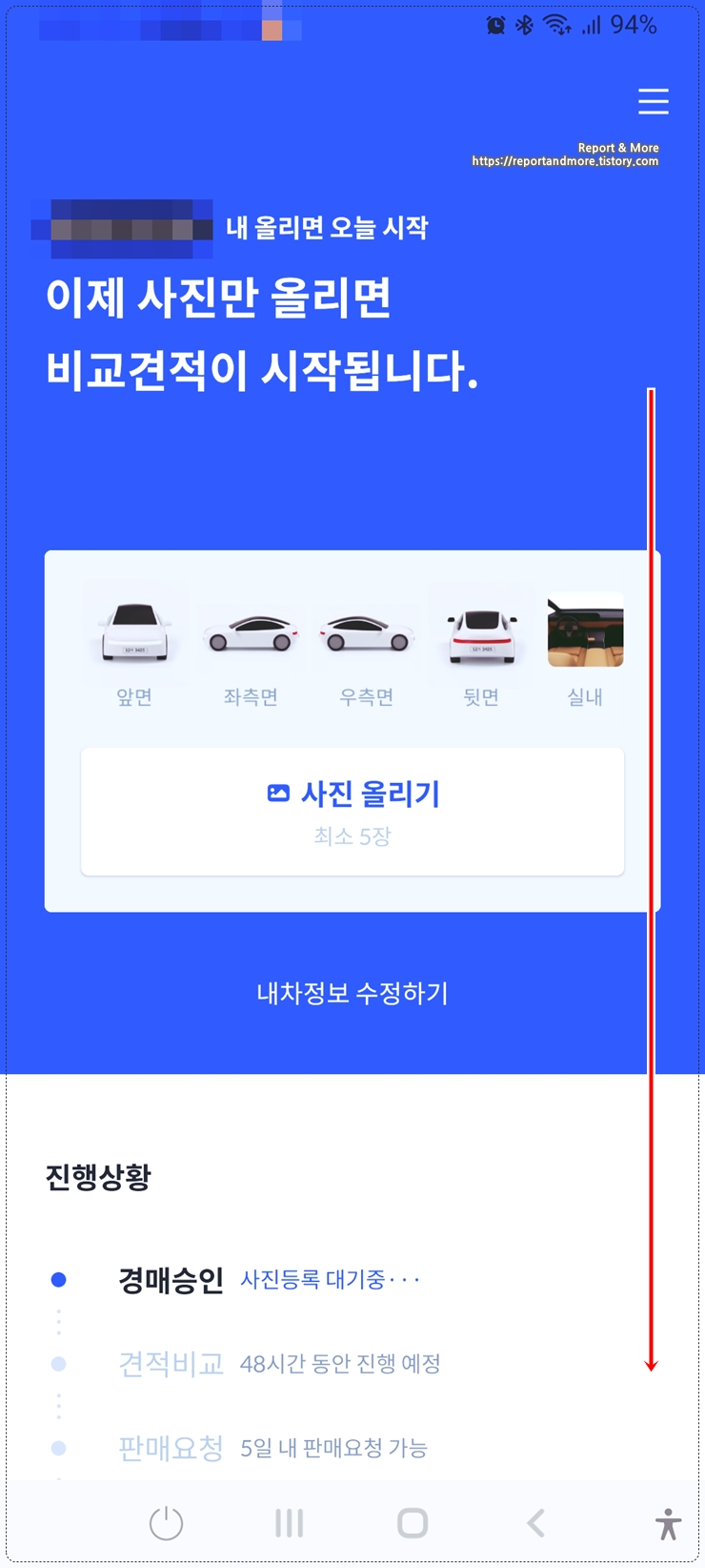 사진을 앞, 뒤, 좌, 우, 실내를 찍어서 올리시면 되는데요,
