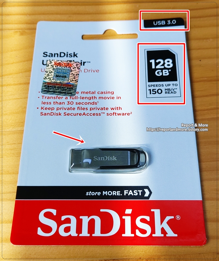 그래서, 이왕 사는 김에 128GB에 USB 3.0이 지원되는 샌디스크 USB를 구매했습니다.