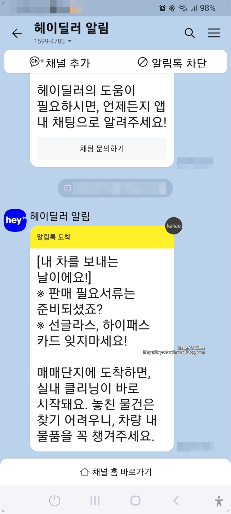 차량 인도 스케줄에 따라서, 물건 잊지 않도록 카톡문자를 보내주더군요.
