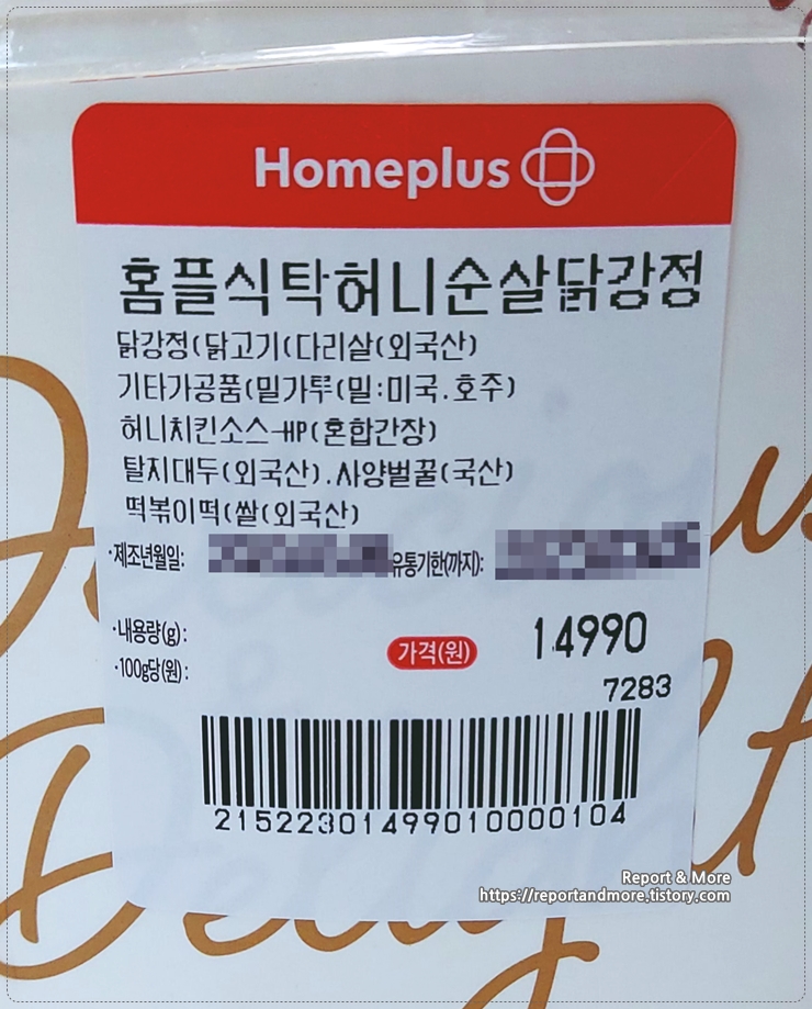 홈플러스 홈플식탁 허니순살닭강정에 들어가는 닭고기는 수입 다리살을 사용하고 있네요.
